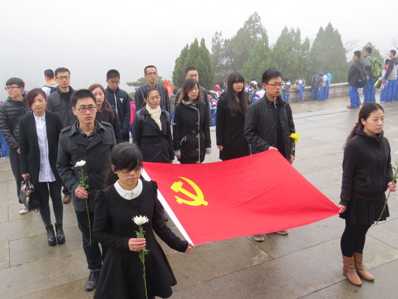 上午十点,党员代表抵达烈士陵园。大家怀着无比崇敬的心情,在烈士墓碑前举行了悼念仪式。仪式上全体党员向烈士默哀1分钟,并由党员代表上前致悼词,全体党员在烈士墓碑前重温入党宣誓,在仪式的最后全体绕纪念碑一圈向革命烈士献花并鞠躬致敬,以表达对革命先烈缅怀之情,整个仪式气氛庄严肃穆。