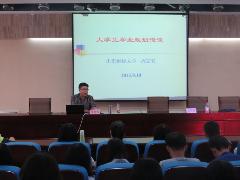 周宗安老师鼓励同学们,如果把学业规划当做理想,那为之努力就是信念。他鼓励大家博览群书,多了解本专业的知识,并学会在生活中用经济学的角度分析事物;要有积极进取之心,增强自我约束力和自我管理能力,做一个严于律己的山财人。