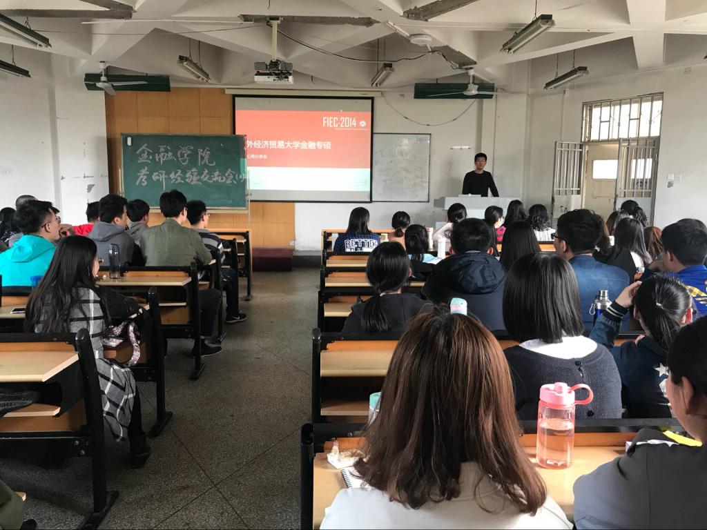 3月29日下午,金融学院在舜耕校区金融学院六号楼开展了“聆听经验,助梦前行”的贸大考研经验交流会,我院考入对外经济贸易大学的顾庆哲、任圣婷、王思琪、杨浩然4位学生作为主讲人,分享经验。2015级学生参加了交流会。